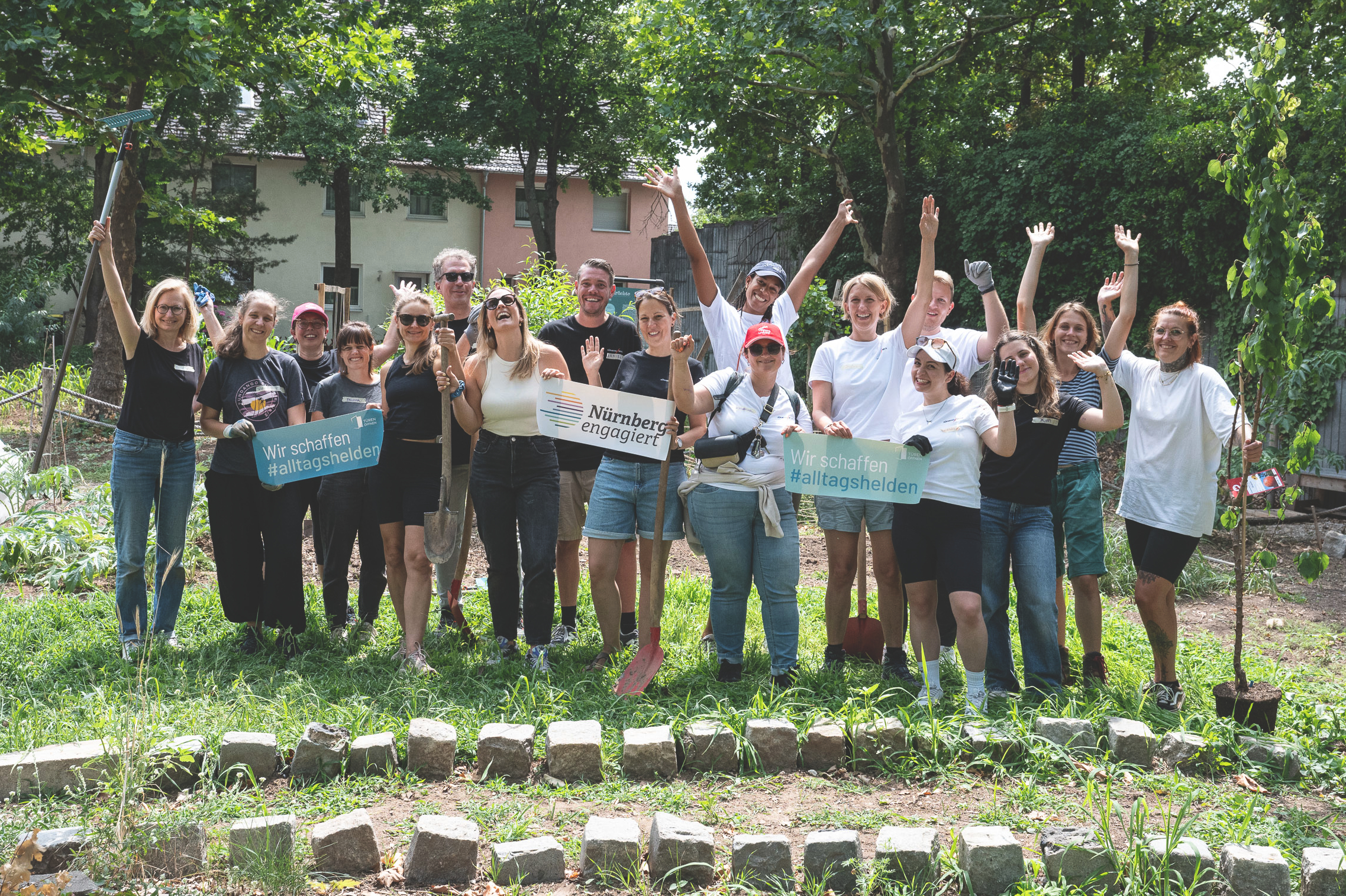Ein gemeinsames Team von NürnbergMesse und Stadt Nürnberg packt beherzt auf dem Weltacker an. (Foto: Tanja Elm)